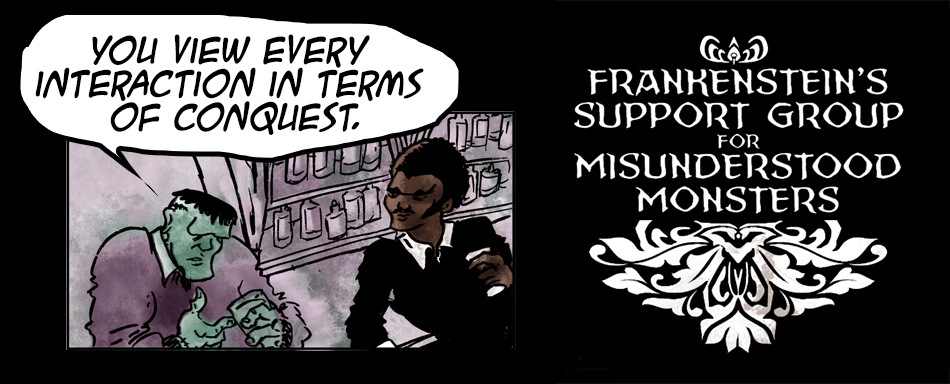 Frankenstein’s Support Group For Misunderstood Monsters A comic about monsters and feelings, for Quirk Books. Chapter 1 Chapter 2 Chapter 3 Chapter 4 Chapter 5 Chapter 6 Chapter 7 Chapter 8 Chapter 9 Chapter 10 Chapter 11 Chapter 12 Chapter 13 Chapter 14 Chapter 15 Chapter 16 Chapter 17